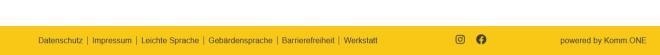 Klicken Sie die jeweiligen Punkte an und lesen Sie alle Informationen zum Datenschutz, Impressum, Leichte Sprache, Gebärdensprache, Barierrefreiheit und Anfahrt und Kontakt.