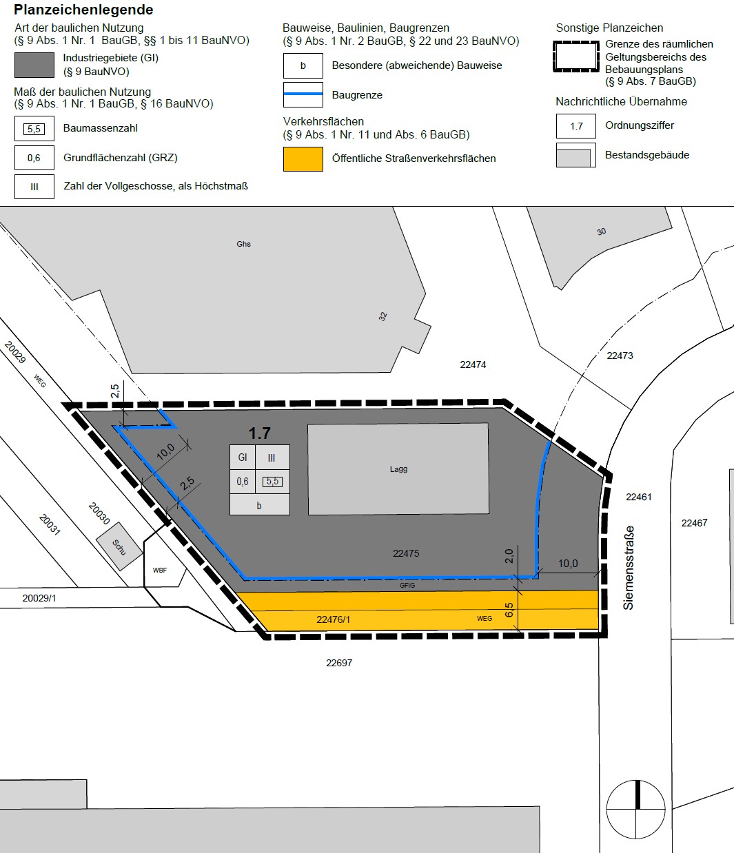 Der räumliche Geltungsbereich des B-Plan-Änderung umfasst das Flurstück Nr. 22475 und das südlich angrenzende Wegegrundstück Flst. Nr. 22476/1 und so eine Fläche mit insgesamt rd. 2.530 qm.