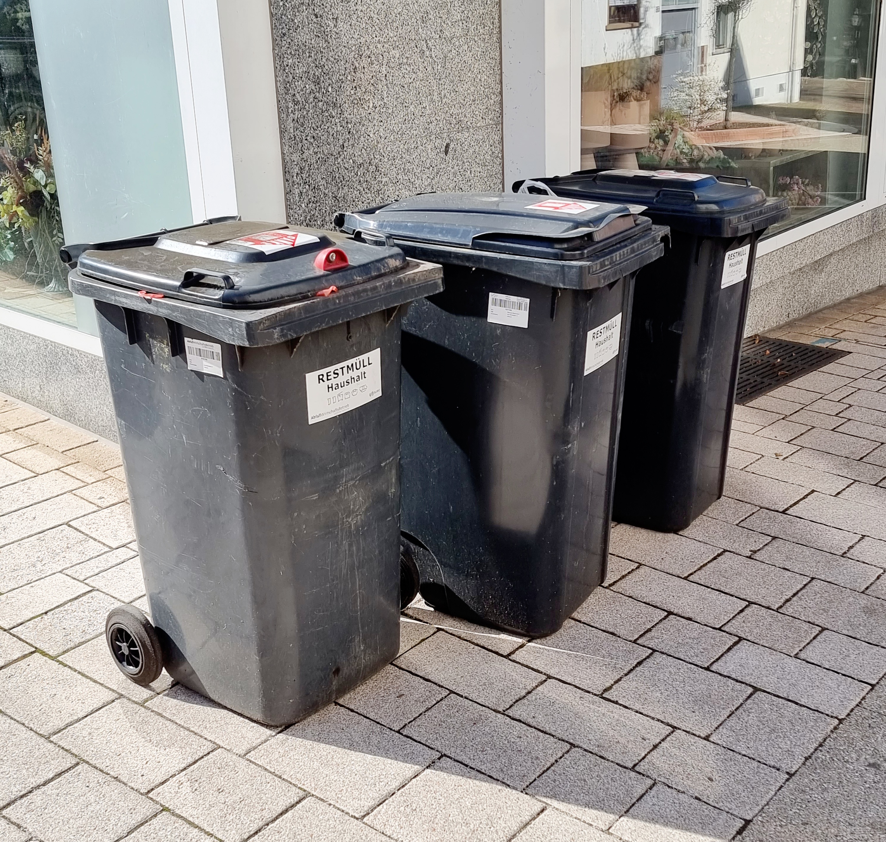 Pro Haus ist ein Restmüllbehälter vorgeschrieben. Teilweise können Sie auch Müllgemeinschaften bilden. Die Abfuhr erfolgt im 14-tägigen Wechsel mit der Wertstofftonne.