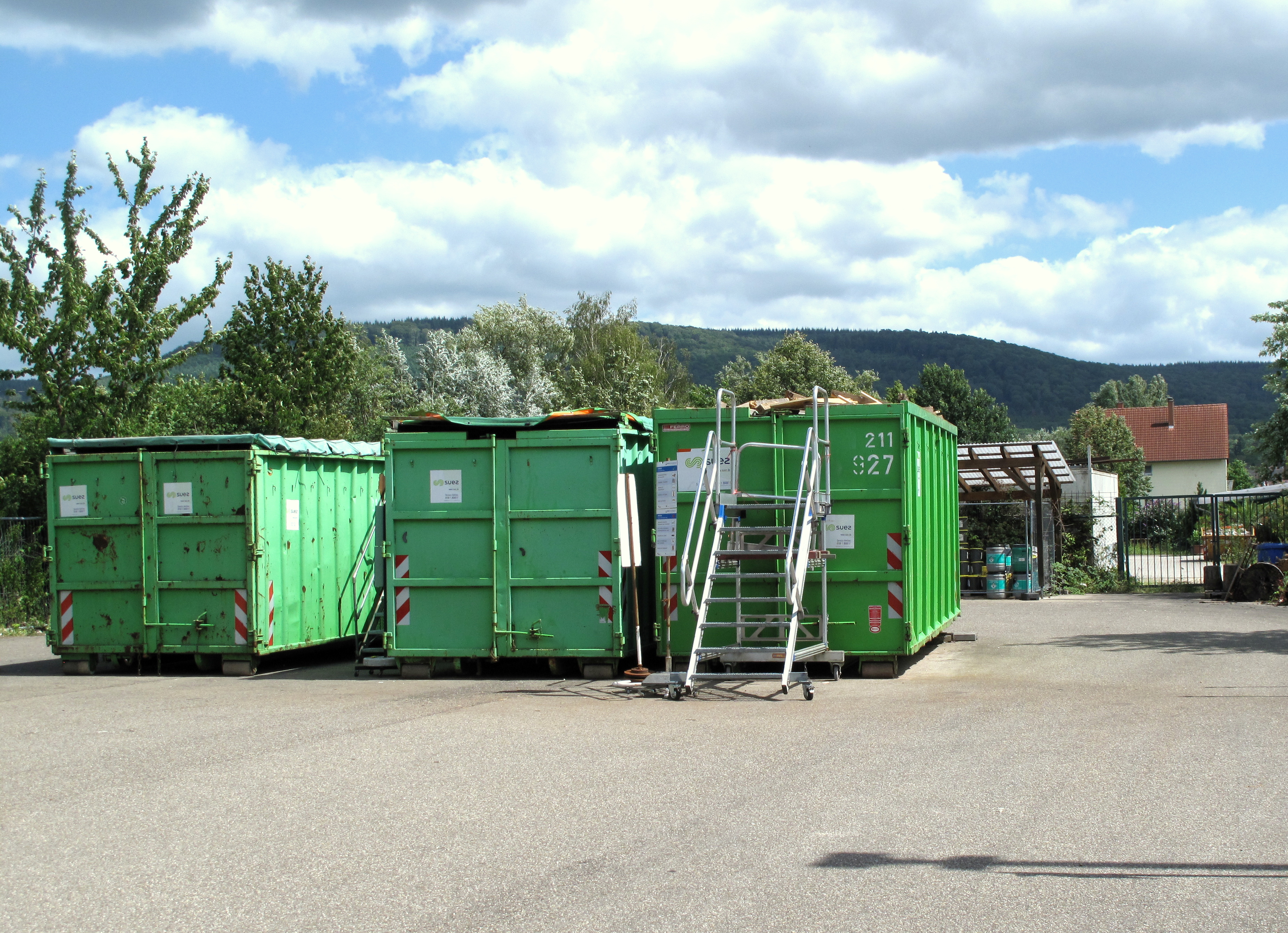 Hier können Sie alle Wertstoffe abgeben, die nicht in die Wertstofftonne gehören, oder von der Menge zu viel geworden sind. Neben Altpapier und Kartonagen (bitte getrennt anliefern) können Altholz, Metalle, recyclingfähiger Bauschutt, Styropor, Haushaltsbatterien, Korken, Leuchtstoffröhren und Elektrokleingeräte - in haushaltsüblichen Mengen - abgegeben werden. Plastik wird nicht angenommen. Ebenfalls sind keine gewerblichen Anlieferungen möglich.