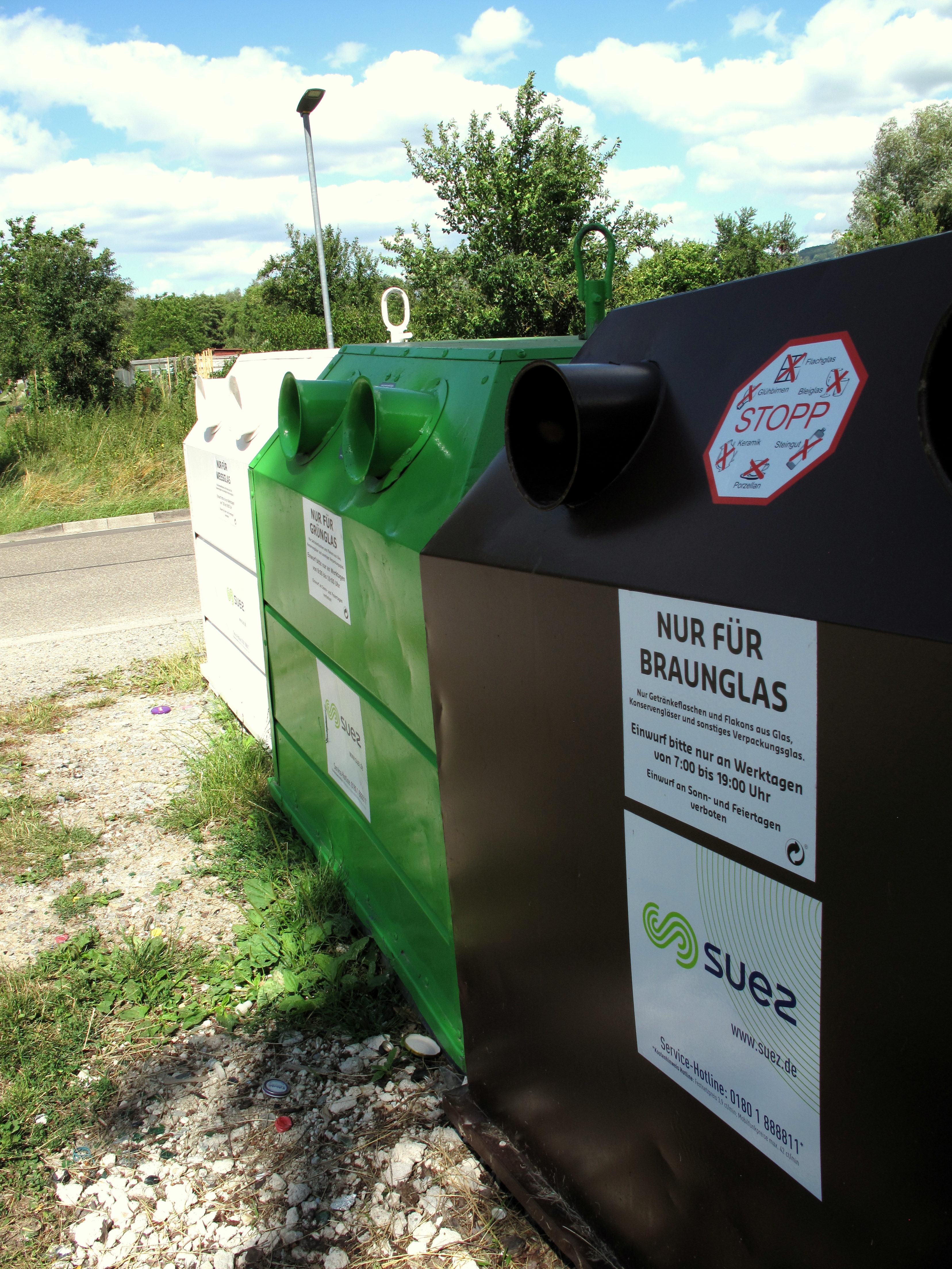 Der Einwurf ist nur an Werktagen (Montag bis Samstag) von 7:00 bis 19:00 Uhr erlaubt. Bitte halten Sie die Einwurfzeiten - insbesondere im Interesse der jeweiligen Anwohner - ein und achten auf die farbliche Trennung des Altglases (weißes Glas gehört in die weißen Container, braunes Glas in die braunen Container und alle übrigen Glasfarben in die grünen Container).