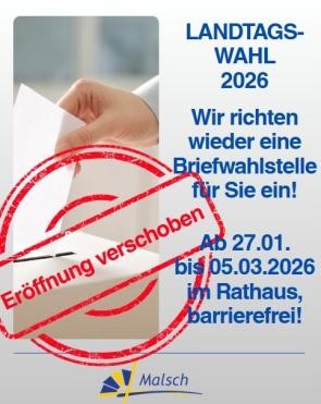 Die ursprüngliche Eröffnung der Briefwahlstelle ab 27.01.2026 muss leider aufgrund der noch nicht vorliegenden Stimmzettel verschoben werden. Ein genauer Liefertermin ist noch nicht bekannt. Wir werden an dieser Stelle informieren, sobald die Briefwahlstelle eröffnet werden kann.
