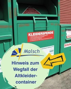 Wir bedauern diesen Schritt sehr und danken Ihnen für Ihr bisheriges Engagement bei der Kleiderspende. Bitte informieren Sie sich bei Bedarf über alternative Abgabemöglichkeiten, etwa beim Wertstoffhof oder Sozialkaufhäusern.